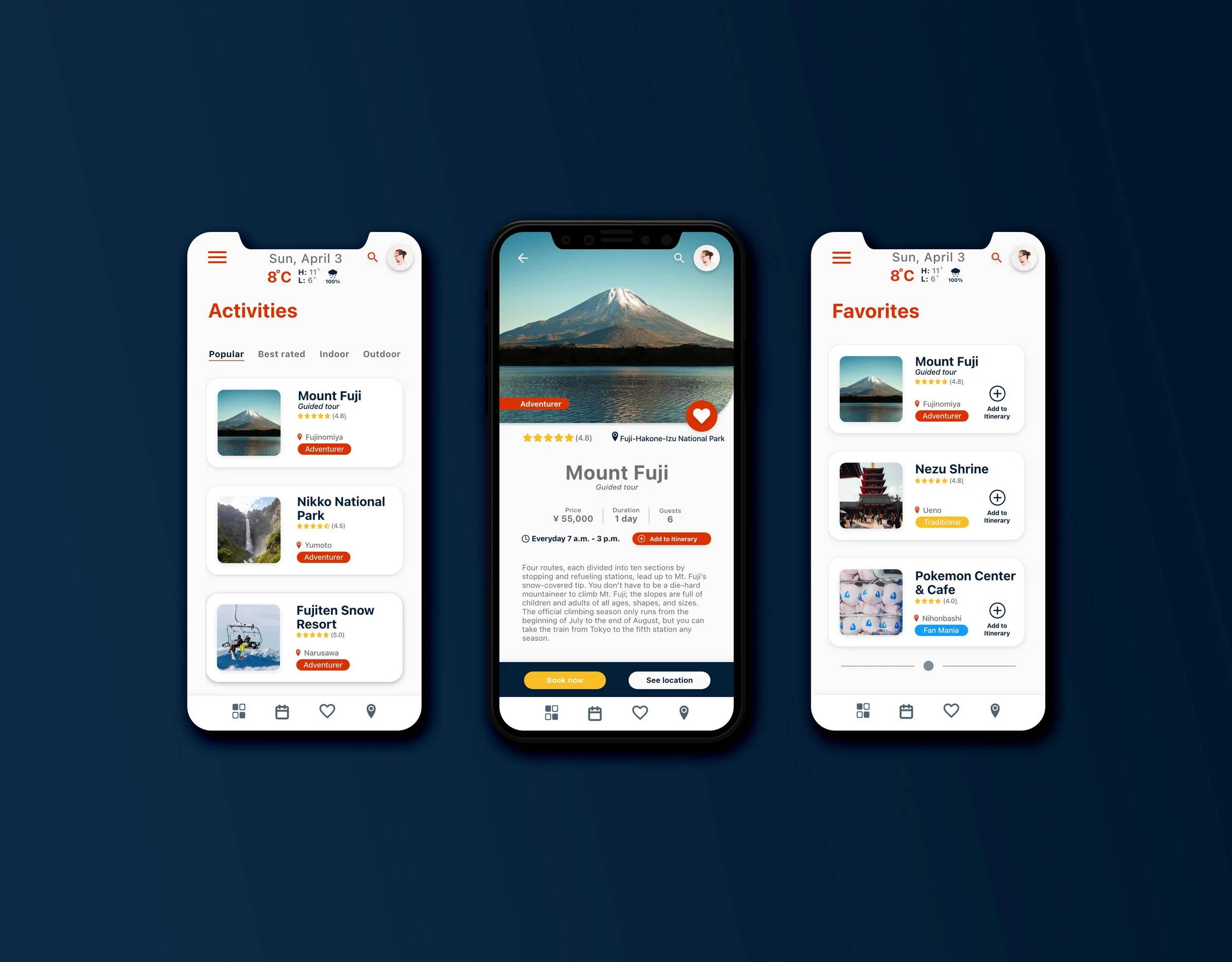 Tori is an app that helps travelers to plan their visit to Tokyo and shows places to visit based on their mood and lifestyle. Our app helps you avoid wasting time with the planning part as it uses the selected preferences in the user profile to create a personalized itinerary and show nearby attractions/places to visit through geolocation.